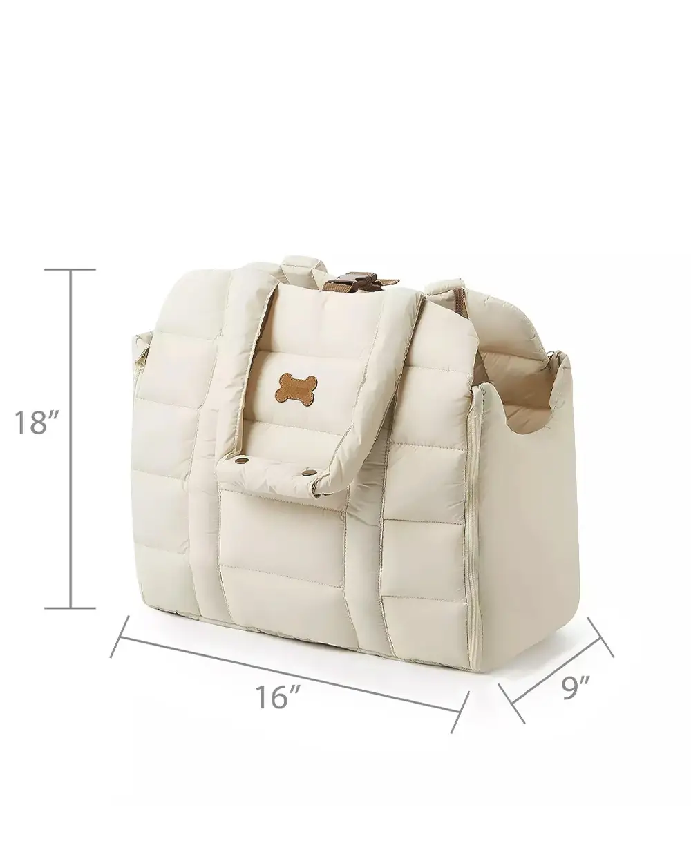The clean quilted design blends effortlessly with everyday outfits, so carrying your dog feels natural whether you’re walking through the city or stopping for coffee.