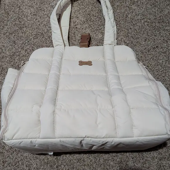 The padded shoulder straps make it comfortable to carry, while the structured base keeps the bag stable so your dog doesn’t slide or sink inside.