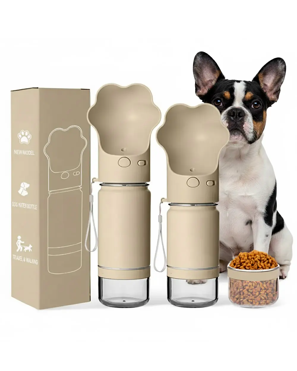 With matte colors and rounded edges, it doesn’t scream “pet product.” Instead, it blends into your lifestyle — soft blush pink, sage green, icy blue, or minimalist cream. Pair it with your Frenchie’s matching gear and you’ve got the most stylish hydration station in the park.