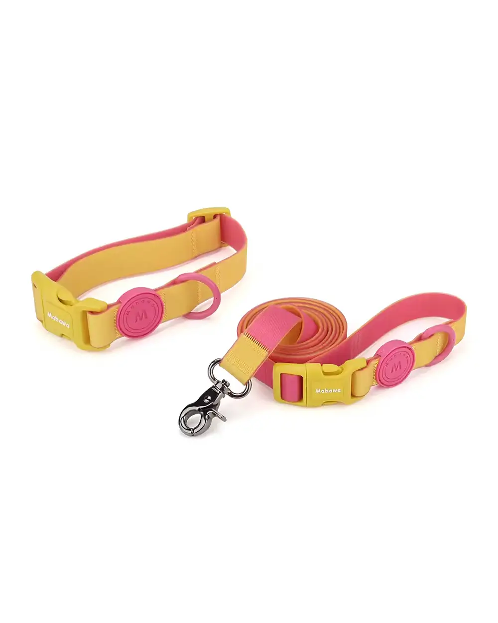 A: BioThane is UV-resistant. The colors stay bright even with daily sun exposure. The pigment is in the coating material itself, not a surface dye that washes out.
